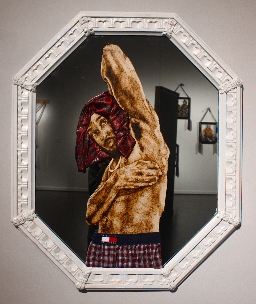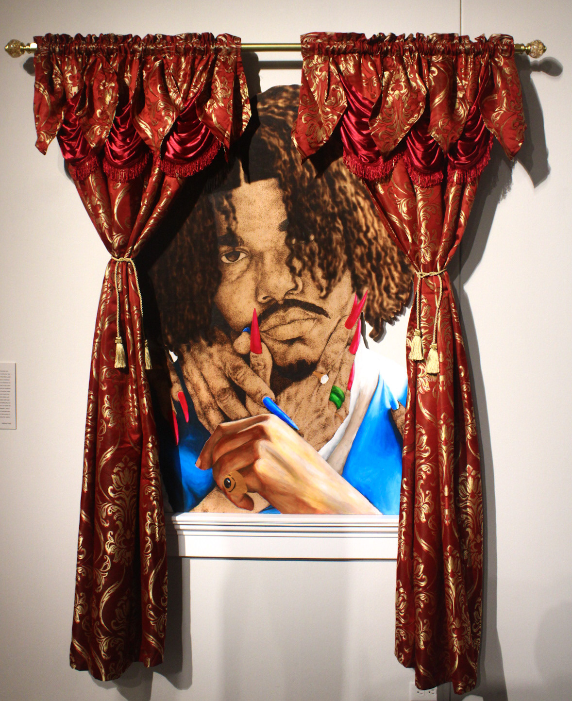 In this work I am in observation, questioning and criticism of what it means to exist as a black man. Not only in the broader context of the Black mans place in America, but in the individual perspective one develops as he begins to recognize himself. I understand that my perspective is destined to evolve and change, but I was moved to know who I am in the present moment. As this is my inaugural solo exhibition, not only as an emerging professional artist, but also as an extension of the work created in tandem with my masters thesis; I have decided to title this show “Introduction to Labor”, As this marks the beginning of the work I intend to be doing for the rest of my life. Creating artwork for the sake of having conversations, seeking a deeper truth or understanding, engaging with my community, and figuring out how to best represent the complexities of our experience. There is no doubt in my mind that I will be called to engage with important conversations in time. However, I strongly believe in order to get there, turning the lens inward is the first step in a long journey.